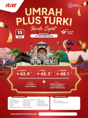 Bergabunglah dalam PROMO ** PAKET UMROH REGULER SUPER EKONOMIS, kesempatan luar biasa untuk merasakan kebersamaan dalam ibadah suci bersama rombongan eksklusif dalam satu pesawat! Mulai dari landing di Jeddah atau Madinah, Anda akan disambut dengan fasilitas dan kenyamanan terbaik, semua ini bisa Anda nikmati dengan harga super ekonomis. Manfaatkan promo ini dan wujudkan impian anda untuk menunaikan ibadah umroh di tahun ini