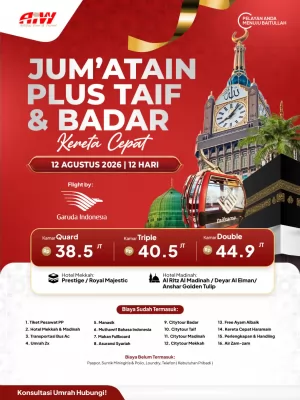 Ingin menjalani ibadah umroh yang berbeda dan istimewa? Alhijaz Indowisata mempersembahkan BIAYA UMROH SHOLAT JUMAT 2X PLUS THAIF | ALHIJAZ INDOWISATA | FEBRUARI yang dirancang khusus untuk memberikan pengalaman ibadah yang lebih mendalam dan berkesa