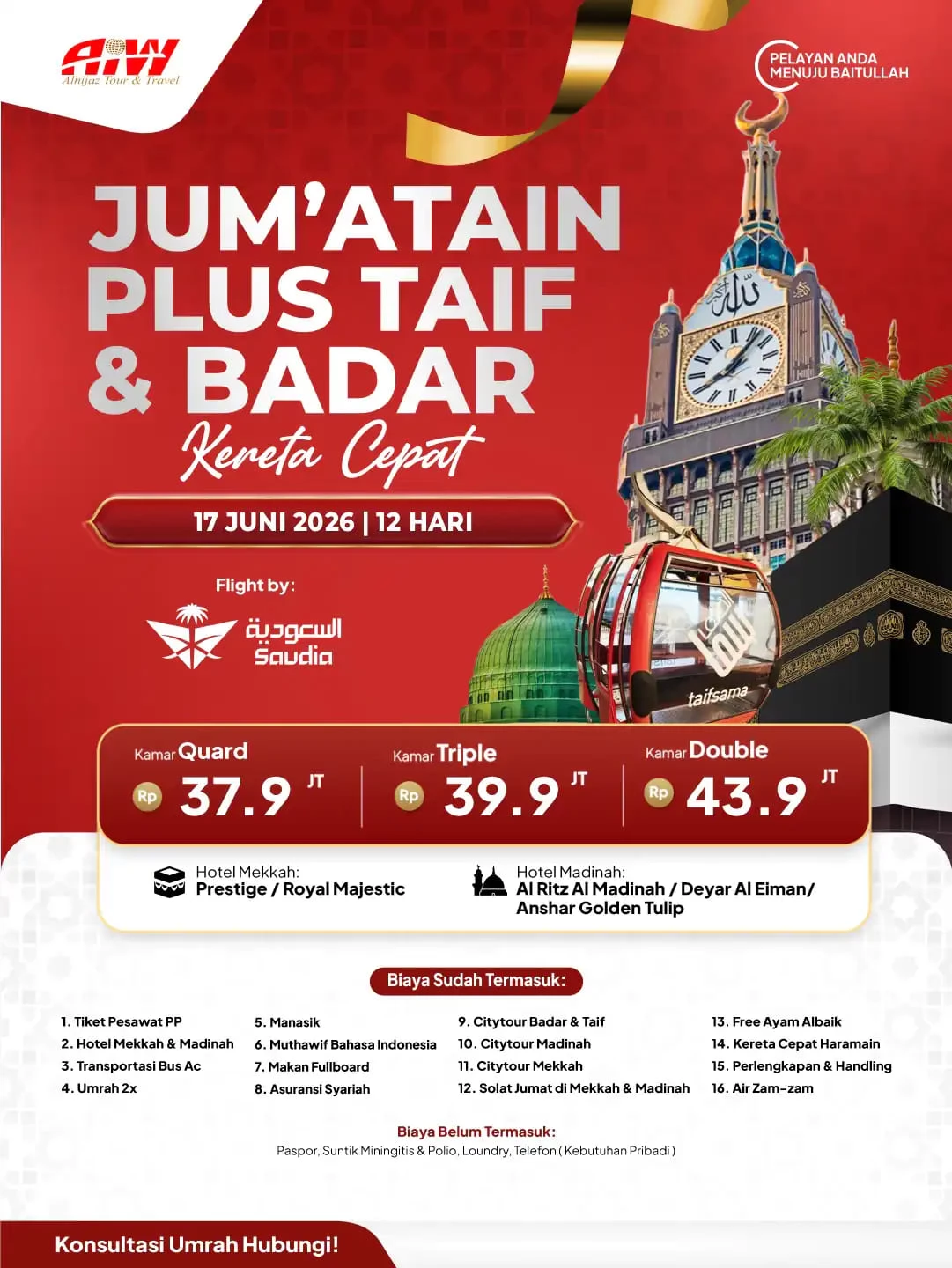 UMROH ALHIJAZ 9 HARI BONUS KERETA CEPAT | HOTEL BINTANG 5 DI MEKKAH | NOVEMBER