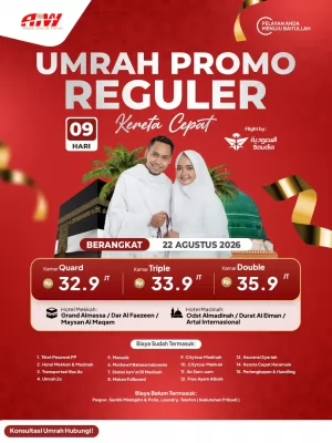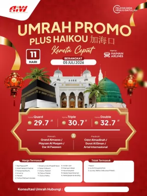 Bagi Anda yang ingin menjalankan ibadah umrah dengan kenyamanan dan pengalaman unik, paket UMRAH SPESIAL KERETA CEPAT HARGA HEMAT ALHIJAZ INDOWISATA adalah pilihan yang tepat. Dengan fasilitas kereta cepat Haramain Ekspres, anda dapat menempuh perjalanan antara Makkah dan Madinah denga